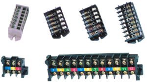 絕緣材料采用聚碳酸酯阻燃,金屬件采用銅導電板及組合螺釘壓接技術, 也可帶空調連接插片端頭,額定電壓600V,連接導線截面0.5~4mm2 ,適用空調上多回路的導線連接。